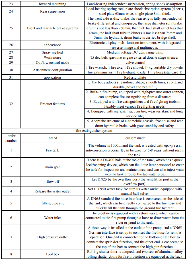 Він ідеально пристосований до потреб у пожежах, таких як міські громади, міста та села, мальовничі парки тощо. Він може не тільки ефективно боротися з початковими пожежами, але й проводити щоденні інспекції запобігання пожежам та публічні функції. Це важливе обладнання для побудови "повного покриття, швидкого реагування" в низовій системі пожежі, і фактично компенсує недоліки великих пожежних вантажівок у кінцевому пожежному полі.