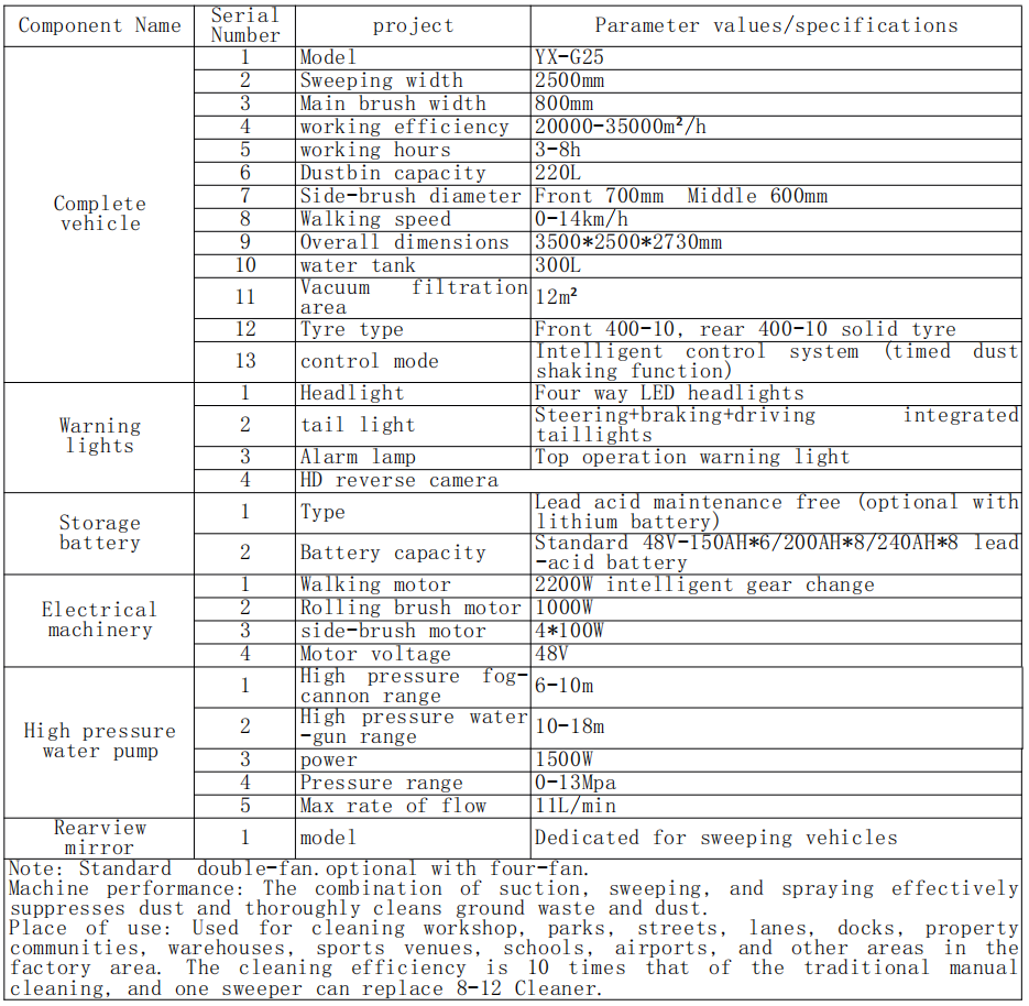 Продуктивність машини: поєднання всмоктування, підмітання та обприскування ефективно придушує пил і ретельно очищає земляні відходи та пил.