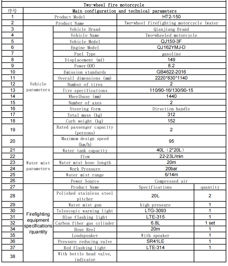 Тіло транспортного засобу невелике (зазвичай близько 2 метрів завдовжки і шириною близько 0,8 метрів) і може легко переходити вузькими вулицями, алеями в старих міських районах, пішохідних вулицях, мальовничих гірських доріг, міських селах та інших районах, до яких не можуть досягти великі пожежні машини, вирішуючи проблему висвітлення пожежної охорони в "останній милі".